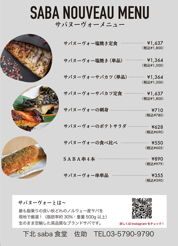 ◆サバヌーヴォー塩焼き (単品) 1,500円